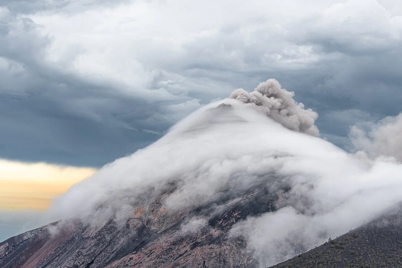 Fumarolas del volcán de Fuego, el volcán más activo de Centroamérica.